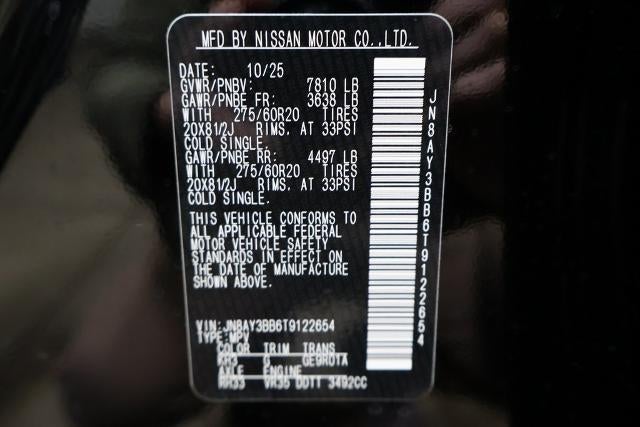 Super Black 2026 Nissan Armada 4D Sport Utility SL 3.5L DOHC 16/19 City/Highway MPG 9-Speed Automatic 4WD