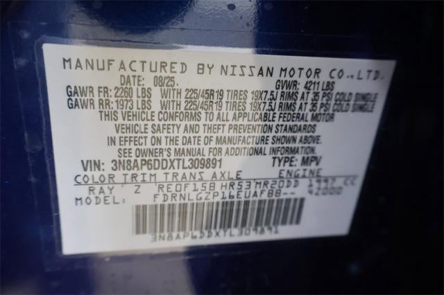 Deep Blue Pearl 2026 Nissan Kicks 4D Sport Utility SR 2.0L DOHC 27/34 City/Highway MPG CVT with Xtronic AWD
