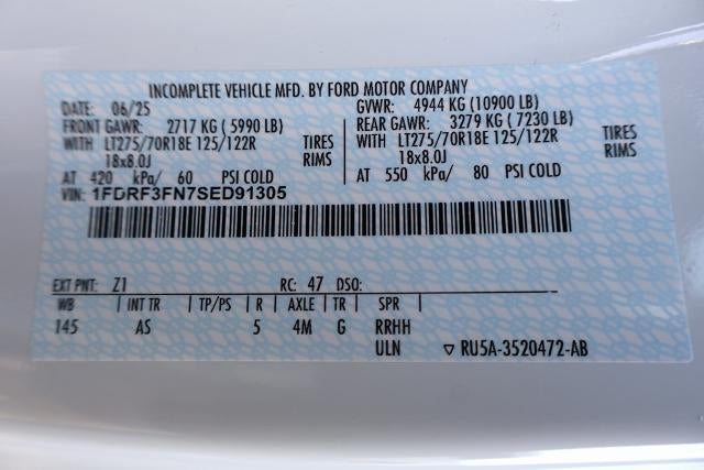 GVWR: 10,900 lb Payload Package, Snow Plow Prep Package, 350 Amp Dual Alternators, 4 Speakers, 4-Wheel Disc Brakes, ABS brakes, Air Conditioning, AM/FM radio, AM/FM Stereo w/MP3 Player, Brake assist, Cloth 40/20/40 Split Bench Seat, Compass, Delay-off headlights, Dual front impact airbags, Dual front side impact airbags, Electronic Stability Control, Electronic-Locking w/4.30 Axle Ratio, Emergency communication system: SYNC 4 911 Assist, Exterior Backup Alarm, Front anti-roll bar, Front Center Armrest w/Storage, Front License Plate Bracket, Front reading lights, Front Wheel Well Liners, Fully automatic headlights, Heated door mirrors, Illuminated entry, Internet access capable: FordPass Connect 5G, Low tire pressure warning, Outside temperature display, Overhead airbag, Overhead console, Panic alarm, Passenger cancellable airbag, Passenger vanity mirror, Platform Running Boards, Power door mirrors, Power steering, Power windows, Rear anti-roll bar, Rear View Camera & Prep Kit, Remote keyless entry, Security system, Speed control, Steering wheel mounted audio controls, SYNC 4 Communication & Entertainment System, Tachometer, Telescoping steering wheel, Tilt steering wheel, Traction control, Trip computer, Turn signal indicator mirrors, and Variably intermittent wipers.