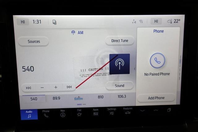 Equipment Group 303A High (360 Degree Camera, 400W Pro Power Onboard (cab & Bed), Adaptive Cruise Control with Stop and Go, AEB Oncoming, Auto-Dimming Rear-View Mirror, Dual-Zone Electronic Automatic Temperature Control, Ford Co-Pilot360 Assist 2.0, Front Parking Sensors, Heated Front Seats, Intelligent Access with Push Button Start, Power Glass Heated Sideview Mirrors, Power-Adjustable Pedals, Power-Sliding Rear Window, Radio: B&O Sound System by Bang and Olufsen, Remote Start System with Remote Tailgate Release, Towing Technology, and Wrapped Steering Wheel), Ford Connectivity Package (1-Year Included), FX4 Off-Road Package, Internet access capable: 5G Modem - Ford Connectivity Package, Mobile Office Package (Console Worksurface and Partitioned Lockable Rear Storage), Tow/Haul Package, XLT Chrome Appearance Package (Chrome Front and Rear Bumpers), 18" Painted Aluminum Wheels, 4-Wheel Disc Brakes, 6 Speakers, ABS brakes, Air Conditioning, Alloy wheels, AM/FM radio: SiriusXM with 360L, Auto High-beam Headlights, Brake assist, Bumpers: body-color, Cloth 40/Console/40 Front Seats, Compass, Delay-off headlights, Driver door bin, Driver vanity mirror, Dual front impact airbags, Dual front side impact airbags, Electronic Stability Control, Emergency communication system: SYNC 4 911 Assist, Front anti-roll bar, Front Center Armrest, Front fog lights, Front reading lights, Front wheel independent suspension, Fully automatic headlights, Heated door mirrors, Illuminated entry, Low tire pressure warning, Occupant sensing airbag, Outside temperature display, Overhead airbag,